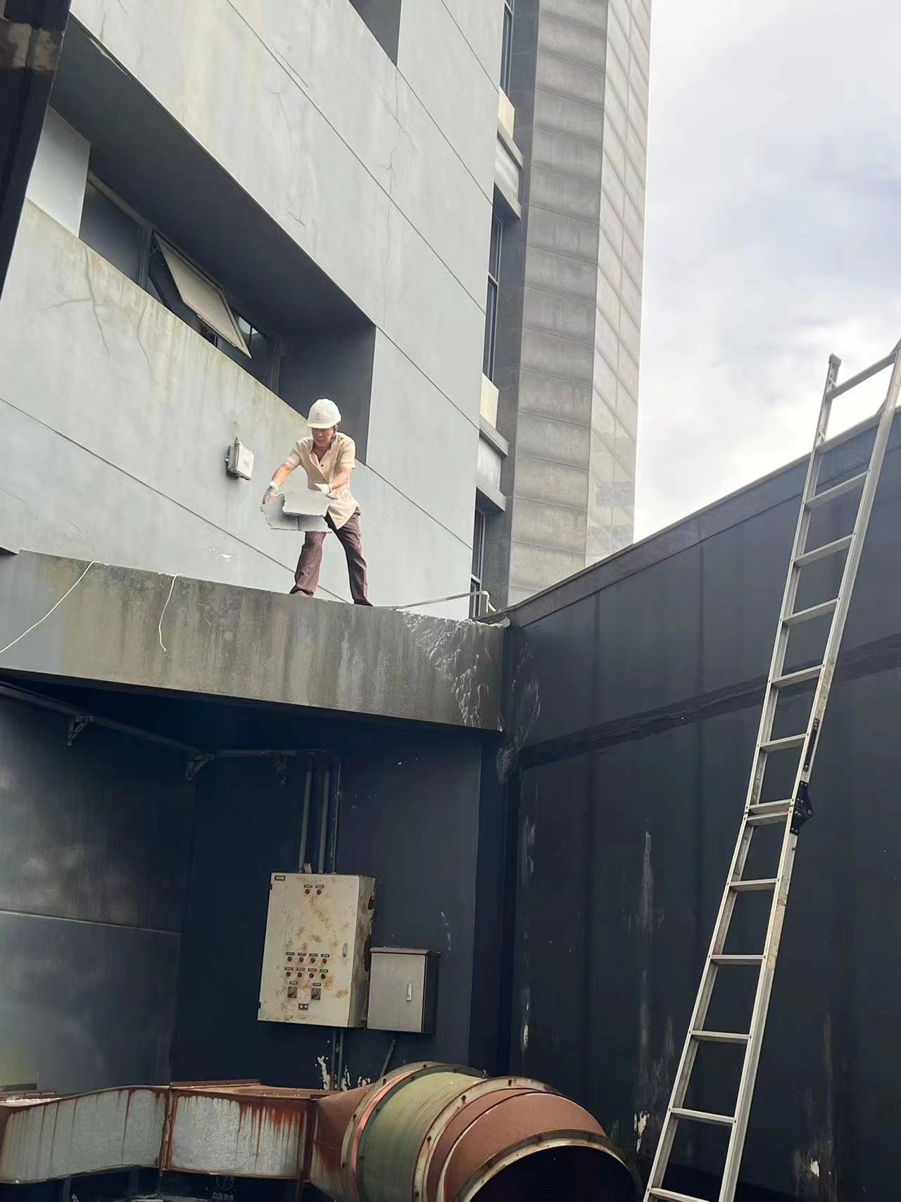 图文的正面和背面都有一些安全隐患的。大概2009年前后盖的这个楼,之后,玻璃幕墙以及外立面都没有修理过,玻璃幕墙目前看看还行。外墙应该有保温,水从裂缝渗进去,保温板吃饱后,增加了重量,加上大风的肆虐,应该会剥落。砸到谁算谁倒霉。如果是台风的天气,极端情况下也会整体剥落,按这个60米高的建筑来讲,吹到地上的位移量应该最大在20米半径左右。西侧跟明理楼形成一个风口,这个区域台风天,一个合适的台风角度,这个区域的风量会很大的。